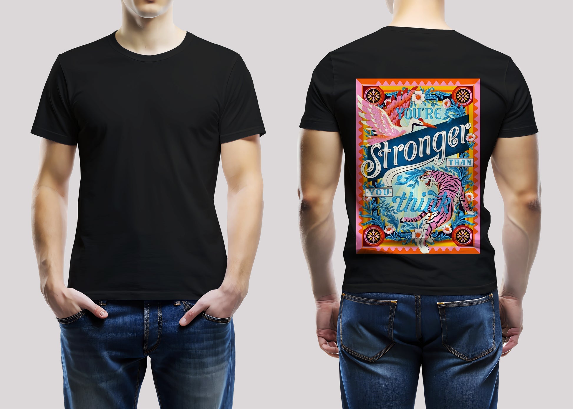 You're Stronger Than You Think T-shirt combines motivational messaging with striking dual-animal artwork featuring a graceful swan and powerful tiger. Crafted from premium 180 GSM fabric, this regular fit tee delivers exceptional durability and comfort for everyday wear. The thoughtful graphic design serves as a daily reminder of your inner resilience, making it ideal for those seeking apparel that inspires confidence. Perfect for casual outings, workouts, or simply embracing a mindset of personal strength.